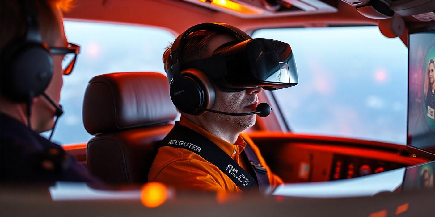 Simuladores de voo em realidade virtual são usados para ensinar pilotos a lidar com emergências aéreas, melhorando reflexos e tomada de decisão. Esses simuladores também podem ser utilizados para treinar controladores de tráfego aéreo, proporcionando cenários variados e complexos.